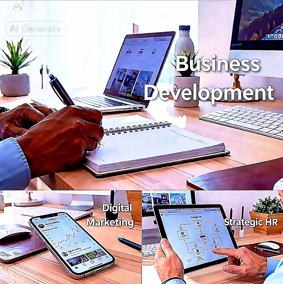 Specializing in Small Business Development, Strategic Human Resources (HR), and cutting-edge Digital Marketing, we deliver tailored solutions that accelerate growth, streamline operations, and elevate brand visibility in competitive markets.